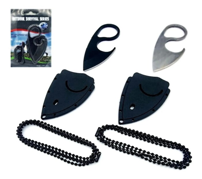 A mini faca adaga de dedo acompanha sua própria bainha e conta com uma corrente para pendurá-la no pescoço!